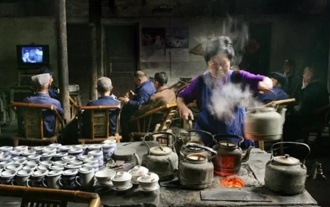 那时天一冷,茶馆的生意就好起来。小时候,家门口有家老虎灶,还有个院子。老板在空地摆上几张桌子,十来把长条凳和几张靠背椅,桌上放着茶杯、茶壶和茶叶,加上现成的滚开水,茶客尽管喝,天天客满。