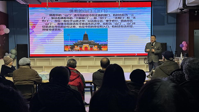 讲座中,赵志村从佛教寺庙建筑特征、建筑布局、风格及象征意义几个方面加以介绍,展现汉传佛教寺庙建筑的精妙智慧,并以秦淮寺庙为例,讲解游客在参观寺庙时应注意的着装和行为举止,强调尊重文化习俗的重要性。两场方志讲座活动展现了秦淮文化的丰富多彩,以“细微之笔”勾勒秦淮文化“大画卷”,促进了文化知识在居民中的普及与传播。