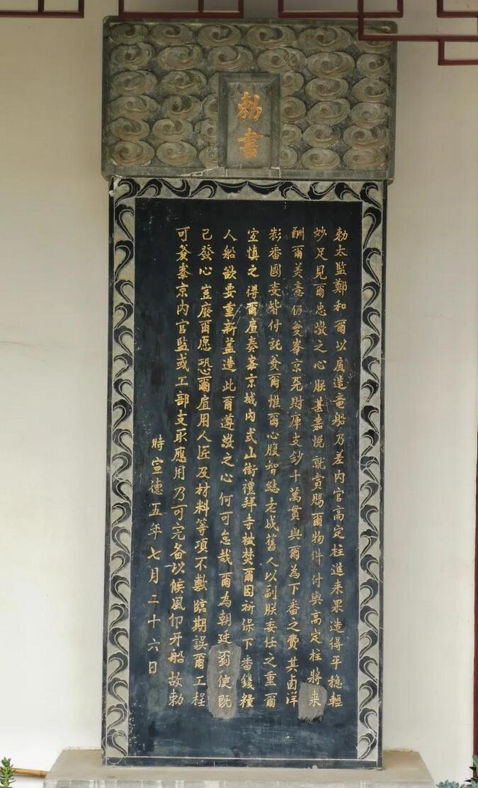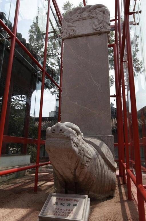 此后的六百多年间,天妃宫虽几度损毁并重建,但其“巍峨宝殿”终未能躲过发生于清咸丰年间太平军战火的摧毁。庆幸的是,永乐十四年(1416),郑和第四次远航西洋归来后,为纪念在航海途中庇护船队的妈祖,向明成祖朱棣禀奏得敕命而立的御制碑——“御制弘仁普济天妃宫碑”(俗称天妃宫碑)被保存了下来。