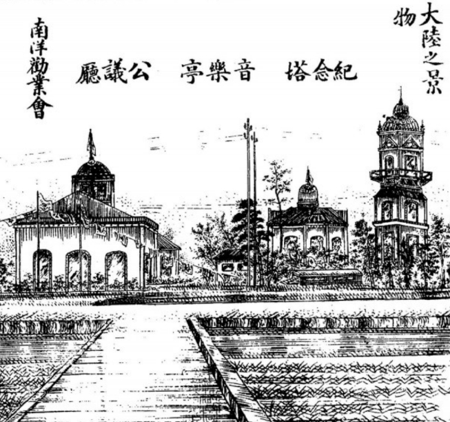 当时为举办劝业会,组织者在城北的会场构筑了数十幢亦中亦西或中西合璧风格样式的标志性建筑、展览馆舍等,如劝业会大门、纪念塔、公议厅、事务所、机械馆、农展馆、美术馆、工艺馆、教育馆、医学馆、武备馆、境外馆、劝工场等。将《图画日报》所刊图画与昔日老照片对比,会发现当时画家写实功力扎实,技法水平高超,让不能现场参观的人从感官上直观体会到了劝业会的盛况。