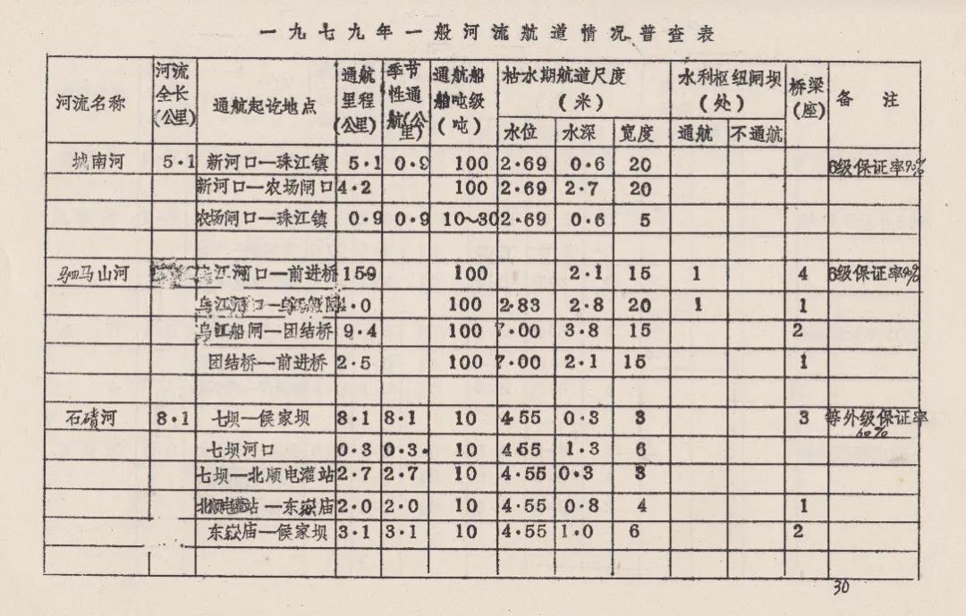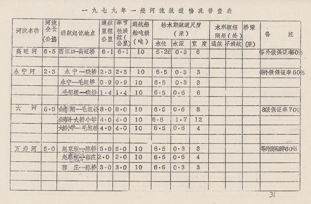 1979年,江浦县(浦口区)一般河流航道情况普查表(1)