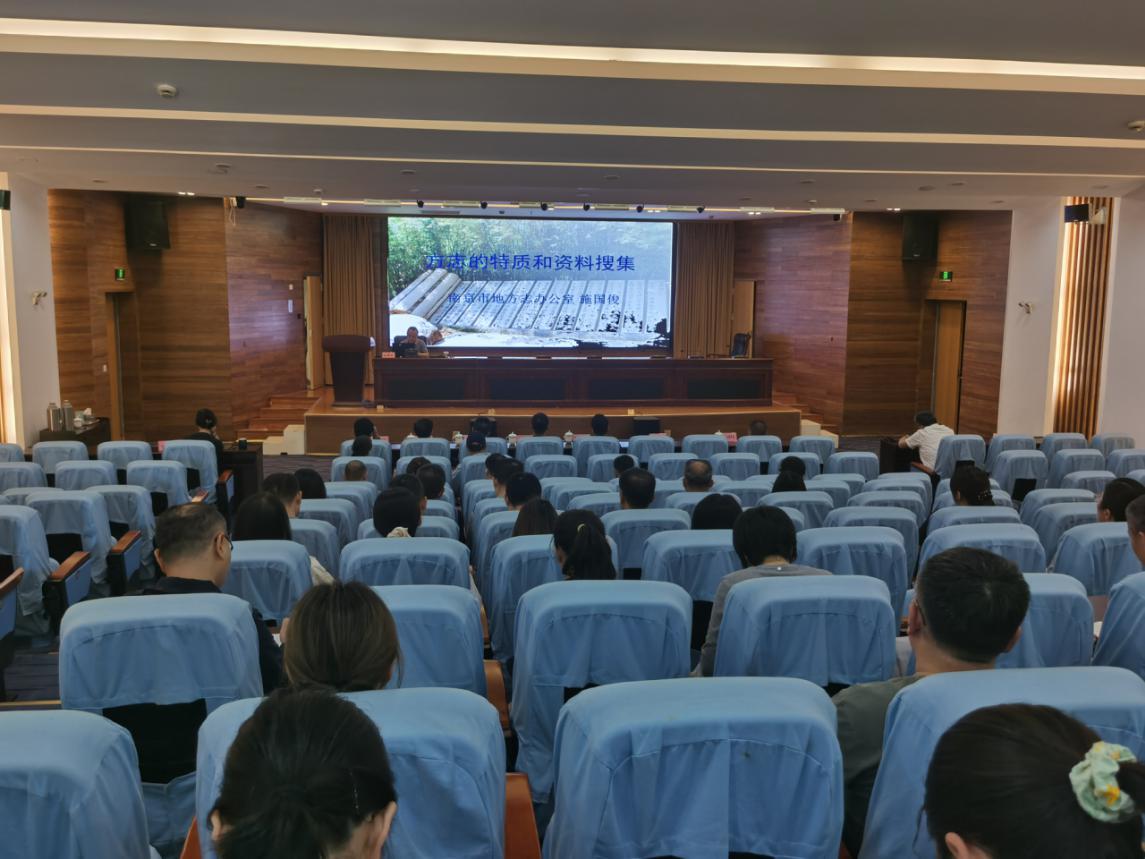 培训会围绕“方志的特质和资料搜集”展开。施国俊结合《地方志工作条例》及南京市第二轮修志丰富成果,系统讲解了方志的概念、性质、功能及编纂原则。针对第三轮修志工作的重点难点,施国俊重点讲解了方志资料收集与整理的方法。他指出,资料收集需遵循“宁失于繁,毋失于略”的原则,广泛征集文字、实物、图表、视频等多种类型资料,并通过“调、查、访、征”等多种手段,确保资料的全面性和准确性。此外,他还分享了资料筛选考证的“四证法”(书证、物证、人证、理证)和编排汇总技巧,为参训人员提供了理论指导和实践依据。