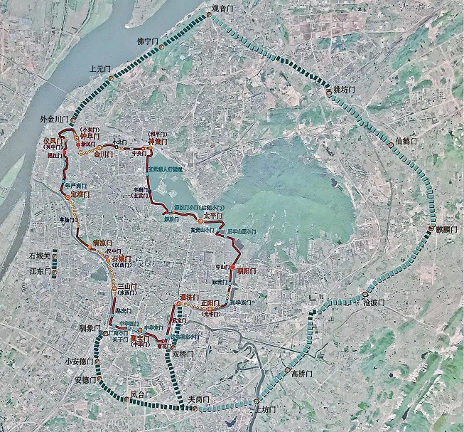 ——仙鹤门民国时仍有砖砌城墙和城门存在,虽今已不存,但附近城垣因作为绕城公路的地基,基本保存完好;