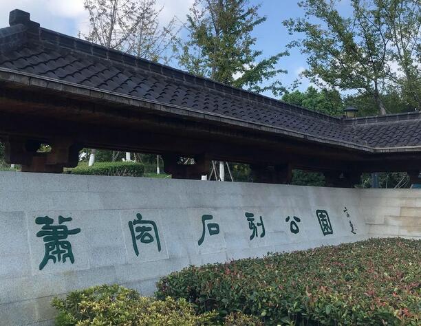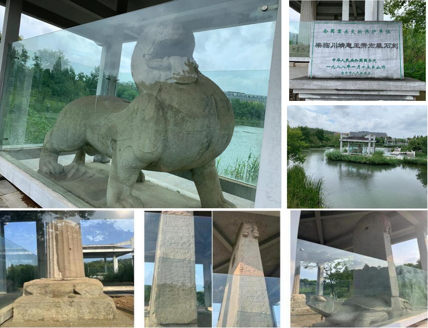 公园颇具规格,景色宜人。在一汪潭水之中,建有品字型布局的三座方亭,所存墓前石刻有3种6件,包括石辟邪两只,东西相对,神道柱二、碑一和龟趺二,东西对列,均置于亭内,并罩有玻璃加以保护。亭子之间建有栈桥,亭子和栈桥均线条简洁,形态方正,显得古朴,颇具南朝风韵。尤其是石兽辟邪雕琢得精致细腻,生动传神。虽经千年,但仍能感受到它昂首挺胸,大步向前的豪迈。