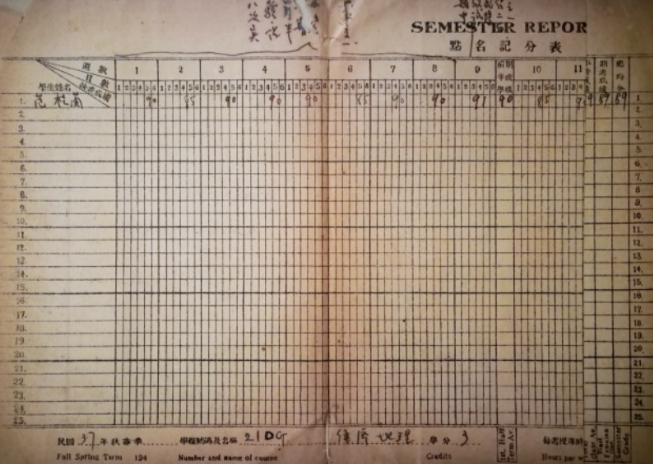 在我收藏该校众多的“点名记分簿”中,有一件十分有趣的事情。有一份“点名记分簿”上,只有一位同学的姓名,意味着这门课程只有一位学生在读。但即便是只有一位学生,这位老师仍然十分认真地教学,这份敬业态度,让人肃然起敬。