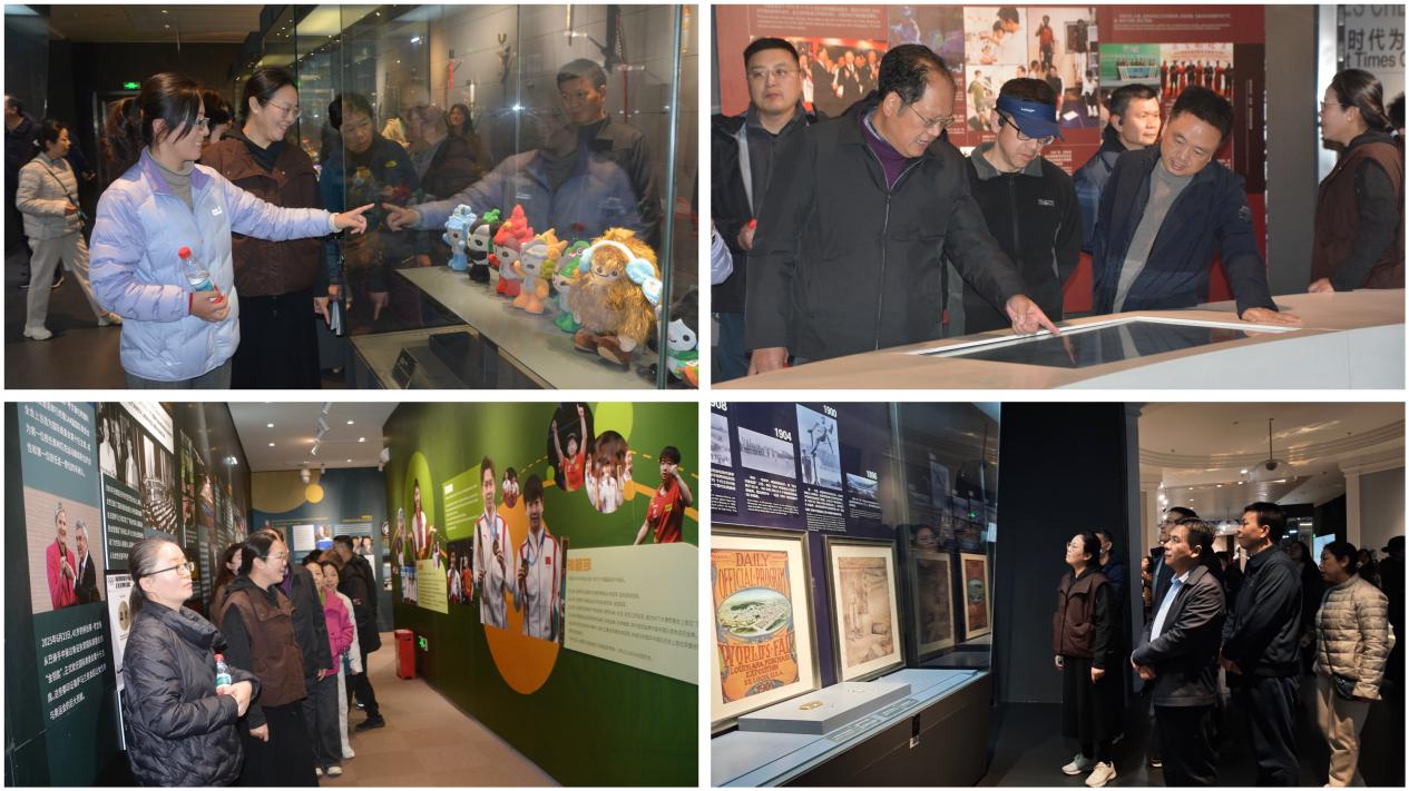 在博物馆讲解员的引导下,全体人员依次参观了“体育同兴 和合共生”长三角体育文化精品主题展和“从奥运到青奥:奥林匹克的发展与改革”主题展览。丰富的图文史料、实物展品及影像资料,生动勾勒了奥林匹克百年发展之路。从中国首次官办国际性博览会“南洋劝业会”留下的珍贵文献,到近代中国第一次全国运动会的纪实影像,再到2014年南京青奥会的全套申办与承办档案——这些跨越时光的历史见证,完整描绘出南京作为中国参与国际奥林匹克事业发祥地的清晰图景。南京不仅见证了中国人奥林匹克梦想的萌芽与成长,更持续推动体育精神与城市文化的交融共生,为中国体育事业的发展留下了不可磨灭的历史印记。
