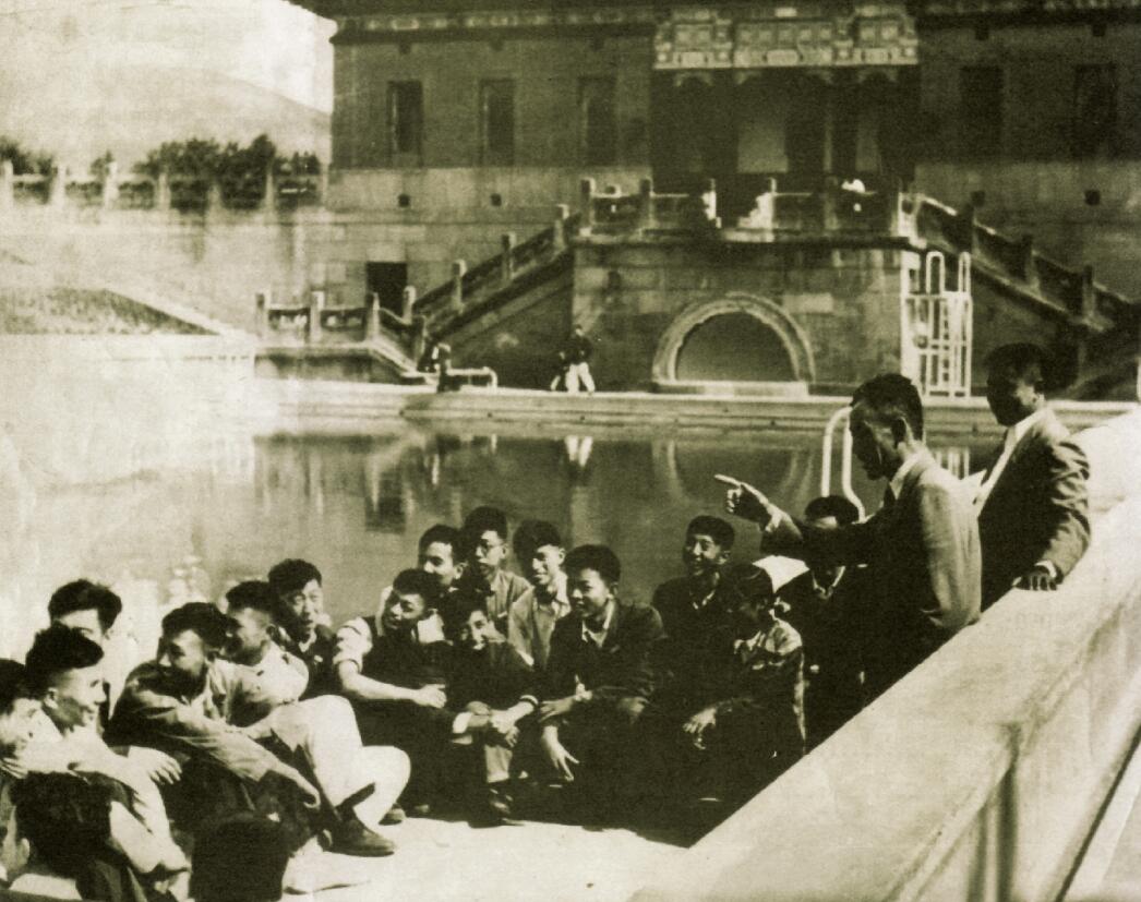 1952年,杨廷宝在中央体育场游泳池给学生授课