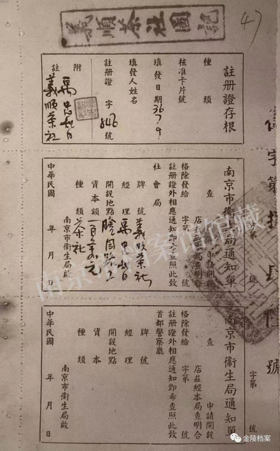 (南京市档案馆馆藏)义顺茶社注册证存根