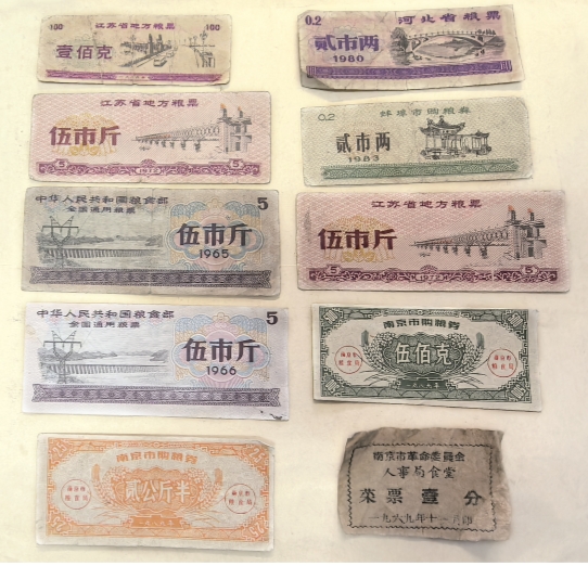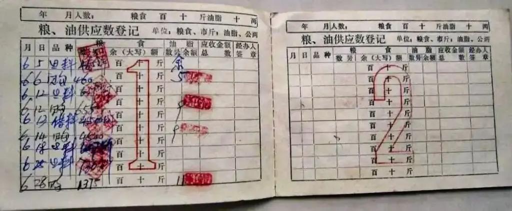 一般来说,每家每月至少要去两次粮站。一次是领取粮油票:黄色粮票面额是10斤,咖啡色和红色粮票是20斤,油票是绿色的。这些都是地方粮油证券,只能在当地城市使用;若要前往外地使用,必须换成全国粮票。此外,每逢重要节日会增加一些票证,如肉、花生、瓜子等副食品票据,这些票证均由粮站统一发放。