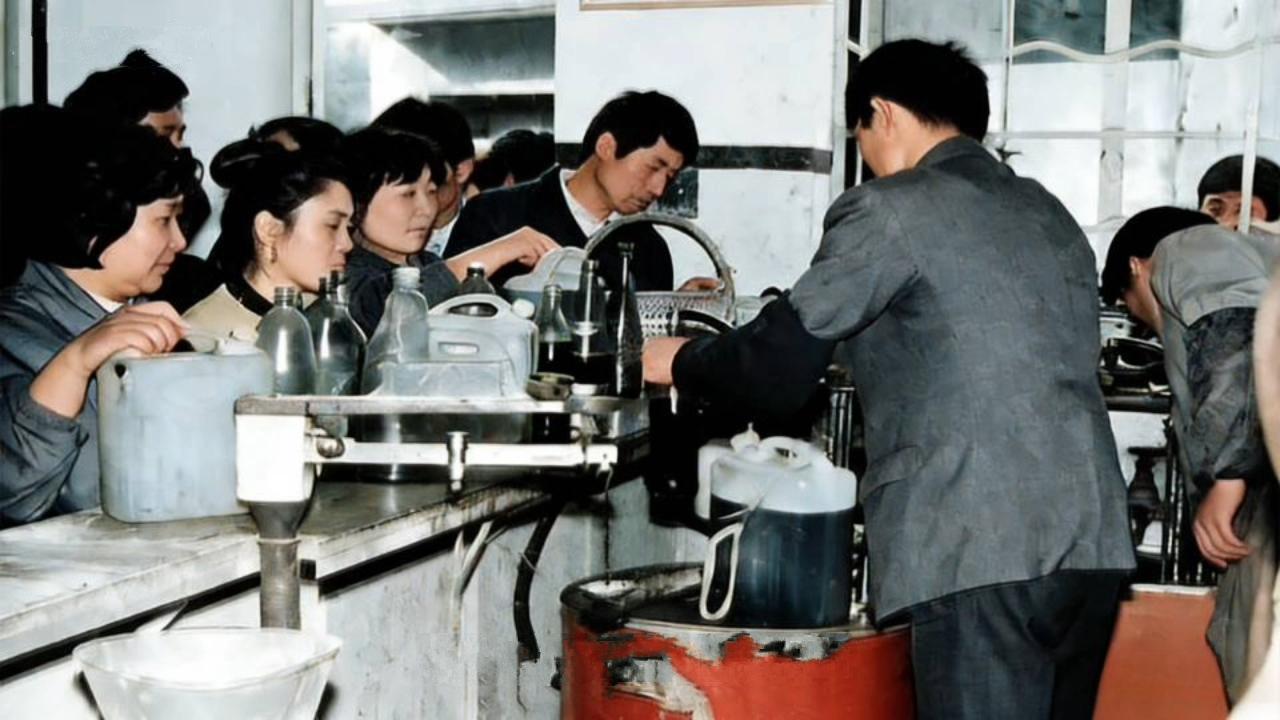 粮站繁忙时常常会延迟下班,以满足居民购粮的需求。售米是用漏斗将称好的米倒入口袋,然后扎紧袋口,把米扛在肩上送回家。售油则是用大小油提子将油倒入油瓶中;后来安装了小型打油设备,通过压力将大铁桶中的油泵上来,设备上有刻度标识,油瓶对准油管即可接油。