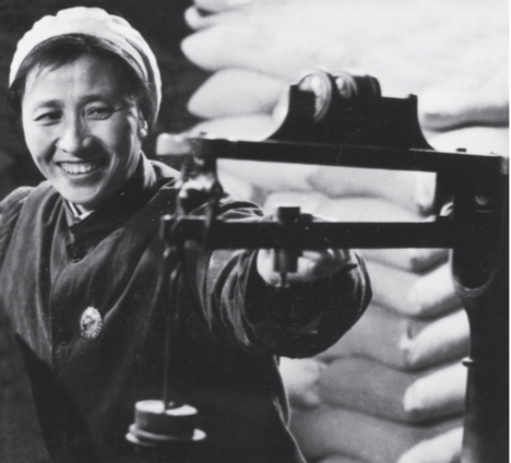运粮工人将装有上百斤大米的麻袋扛上肩,拆开袋口的麻线,走上伸进粮仓的跳板,将粮食倒入仓内。扛麻袋运米既要有体力还要有技巧:运输工把开口的粮袋扛在肩上,要走得稳,不能滑落。随着一袋又一袋粮食的运送,粮仓堆得像小山似的。