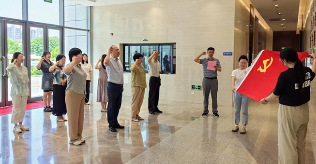 7月1日上午,区志办全体党员在一楼大厅举行重温入党誓词仪式。面对鲜红的党旗,党员干部们高举右拳,字字铿锵,用重温誓言回溯入党的初心,表达对党的忠诚,进一步筑牢信仰之基、强化担当之责、坚定奋斗之志。