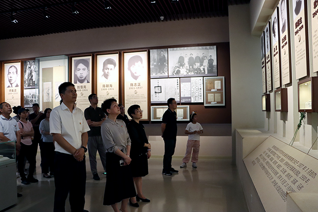 凭吊仪式结束后,大家步入《信仰的力量—雨花英烈生平事迹展》展厅。在讲解员的引导下大家认真聆听革命先烈的英雄事迹,观看珍贵的历史资料,深刻感悟雨花英烈“信仰至上、对党忠诚”的崇高精神。
