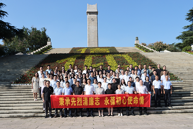雨花台烈士陵园松柏苍翠,纪念碑巍然矗立。仪式正式开始,全体参加人员肃立默哀,随着《献花曲》响起,礼兵迈着铿锵有力的步伐护送花篮缓步走向纪念碑,花篮缎带上“革命烈士永垂不朽”八个金色大字熠熠生辉,“我志愿加入中国共产党......”在派驻纪检组组长张欣的领誓下,全体人员面向鲜红党旗举起右拳庄严宣誓,重温入党誓词,表达不忘初心、牢记使命的坚定信念。