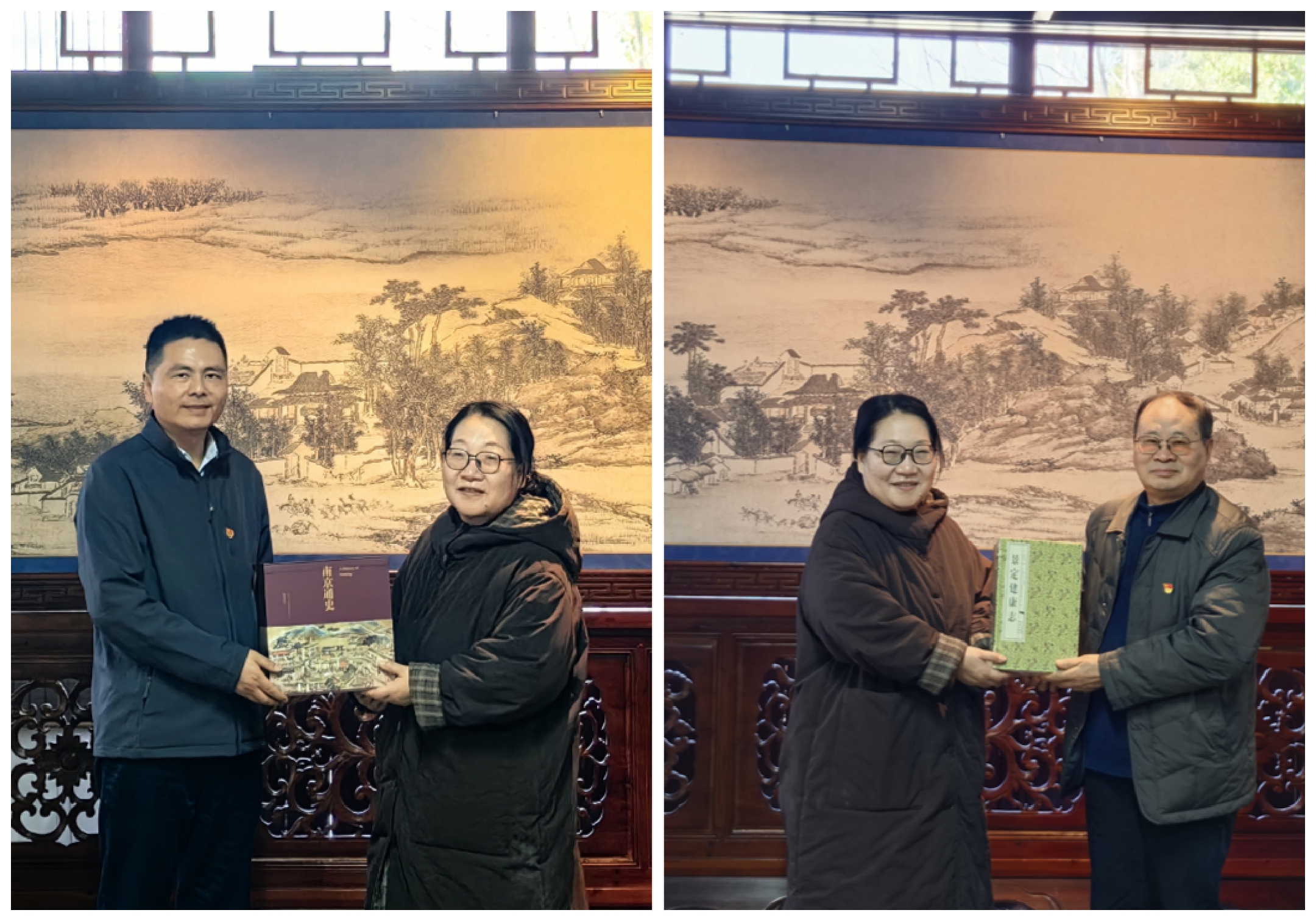 随后,开展了方志文化“六进”志愿服务活动。市志办向莫愁湖公园管理处赠送了史志书籍共35种60余册。双方围绕《莫愁湖志》编纂、莫愁湖历史文化挖掘与公园建设发展深入交流,推动方志文化与景区建设深度融合。