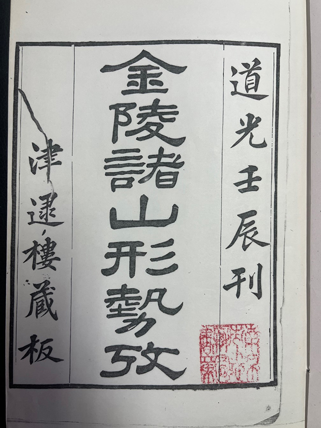 《金陵诸山形势考》由清蒋绣岑撰写,金陵甘福校,道光壬辰刊,属津逮楼藏版。