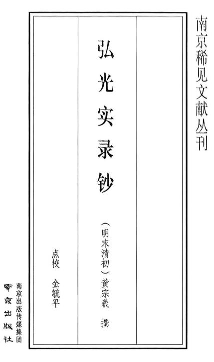 也由此,有了梨洲先生这本简薄的,记录了自明崇祯十七年福王朱由崧即位南京始至左懋第、袁继咸忠义殉国,江西巡抚旷昭迎降时止的,关于南明弘光朝之事的《弘光实录钞》。
