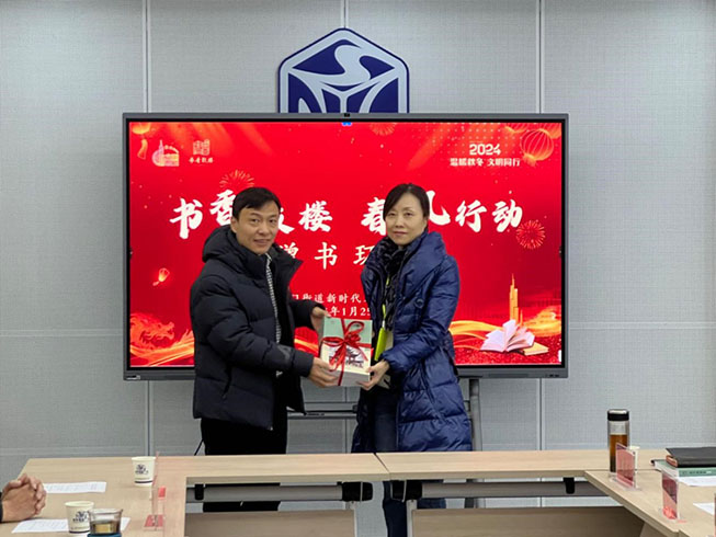 会上举行赠书仪式,区档案馆(地方志办)馆长(主任)盛捷向中央门街道及各社区捐赠《南洋劝业会图影集》。