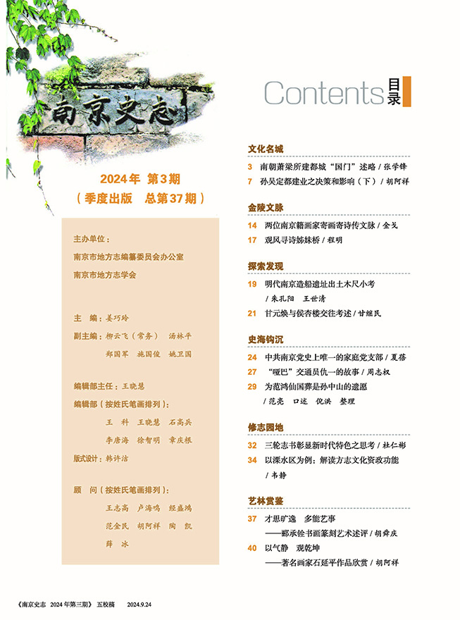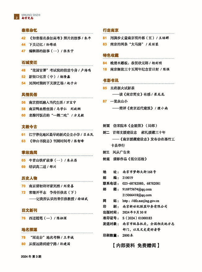 日前,由南京市地方志编纂委员会办公室、南京市地方志学会主办的《南京史志》2024年第3期出版发行。