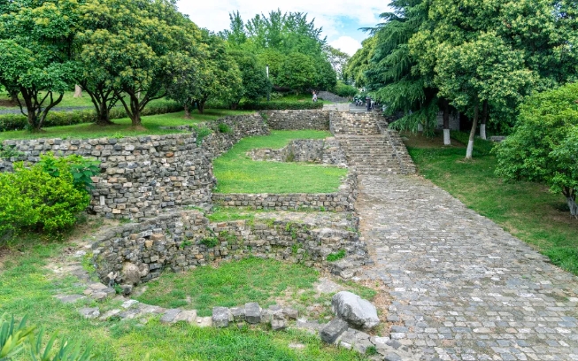 今天,沿秦淮河的延伸及东段残存明城墙的走向,在御道街、大光路路口向南百十米,可找到这座与众不同的城门遗址,这里已是一个小巧玲珑的街边公园。在这用城砖铺就的道路上前行,便会看到一小片似乎是故意保留的残迹,下凹的地面上散乱着城砖和石块,隐约显露出一个环形工事的模样,好像在执着地提醒人们这里曾发生过惨烈战事。