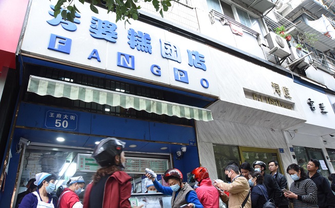 做糍粑是有讲究的,首先,饭不能煮得太硬,否则油炸后就会过于干燥,吃了会上火;若是煮得太烂,虽外面硬,但里面软且有水分,口感会很差。其次,油炸要透,又不能过头。只有这样,油炸糍粑外壳像锅巴一样酥脆,里面是软糯的米粒有润劲耐嚼。刚出锅的油炸糍粑口感最棒,冷后口味则要差很多,所以常见顾客围在旁边油锅旁等待出锅。