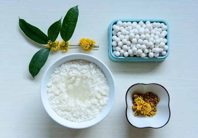 酒酿自己在家也可以做。糯米用水浸泡一天后蒸熟。晾凉至不烫手后,与酒曲按比例搅拌均匀,装入干净无水的容器中,中间留一个孔,便于观察发酵时析出的汁水。当室温二三十度时,不需要保温,48小时即成;冬季则需用被褥捂起来保温,48小时左右亦成。