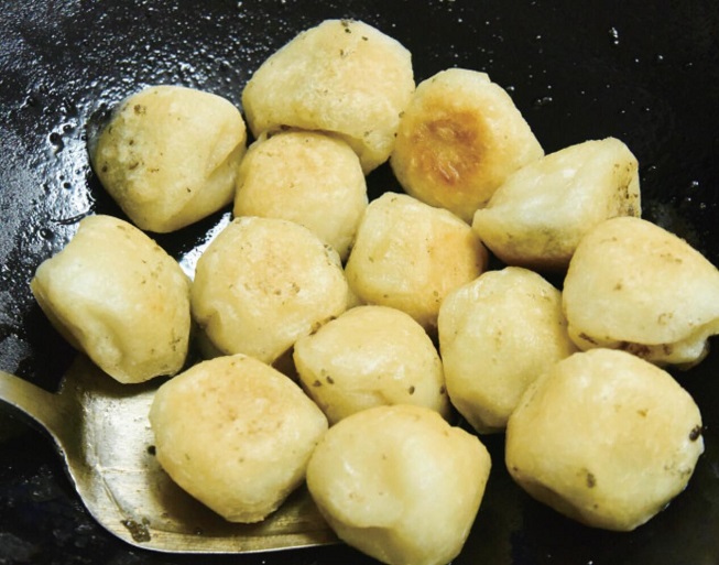20世纪60年代以前,在大街小巷特别是小学附近都有炒元宵的摊子,一个炉子、一口小铁锅,再配一只饭焐子,便可以做生意了。锅里刷上一些食用油,再放进十多个元宵,进行翻炒,待元宵软塌发黄,盛出,放入饭焐子保温待售,炒元宵香、软、甜、脆,老人小孩特别爱吃。以长乐路口一位王姓老者的炒元宵最好,馅甜而不腻、面柔而不韧、皮脆而不焦,非常可口,至今还令人怀念。