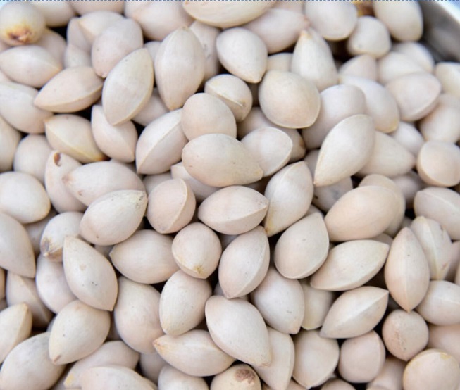 南京有首儿歌:“炒盐豆,炒豌豆,炒出白果翻跟头。”说的是过去,特别是20世纪50年代,在学校旁,或街头巷尾那些用铁丝笼子卖炒白果子的摊子,从午后到半夜都有人就着炉火卖炒白果。两个带把的半球形的铁丝网笼,装进适量的生白果后就合成一个圆球形,放到一个小小的红风炉烤着,边烤边转动。炉火要控制好,火小了,白果烤不熟;火大了,会烤煳白果,甚至爆炸开来。卖炒白果的师傅都很有耐心,一笼白果从生到熟,就像乐队里那摇沙球的乐手,有节奏地转动笼子,让白果受热均匀,待到白果壳普遍发黄,白果香气弥漫开来,或听到轻微的白果壳爆裂声,那就是白果熟了。守在旁边的顾客,尤其是学生都抢着上来购买。待白果稍凉,就可以剥壳食用了,那翡翠般嫩绿的果肉,略带一点苦味,别有滋味。若没有卖完的,小贩子便会放入草焐子中保温。这时,他会扯着喉咙喊:“滚烫的白果!”这声音在冬夜里听起来十分的温馨。当时,白果是认颗卖的,1分钱3至5颗。