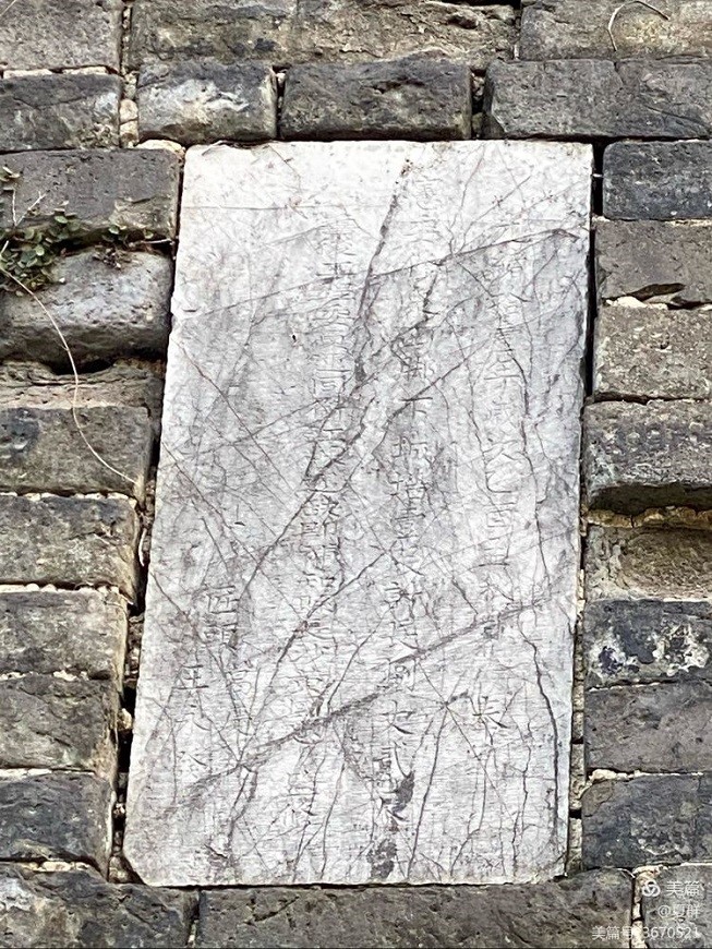 这是一块长方形竖状记事碑,依稀可辨铭文:“光绪拾壹年岁次乙酉孟秋月奉宪委修象山脚下城墙壹段计长捌丈贰尺善后工程委员运司同衔江苏遇缺即补知县长沙黄国忠监修匠头王永发葛庆林”。从这块碑可知,这段城墙曾有过一次修复,时间是光绪十一年(1885)。专家推测,这段城墙在太平军攻南京城时被炸毁,清光绪年间修补而成。镶嵌于城墙约一半高度地方的这块碑文记载的就是修补的时间、长度、施工单位、监修人和包工头等内容。或许清末烧造的城砖与明城墙砖有差别,导致一眼看去就知道这段城墙是后来修补的。