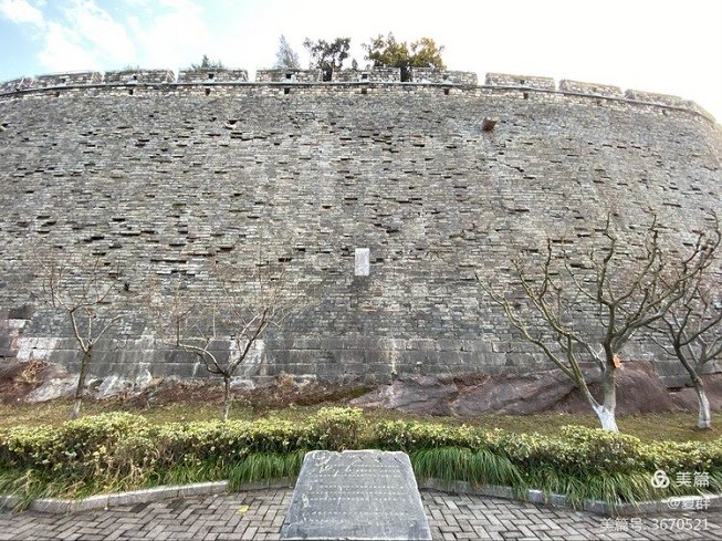 沿着古城墙下的景观道漫步前行,不远即到“象山碑文”处(四望山古时亦称象山)。