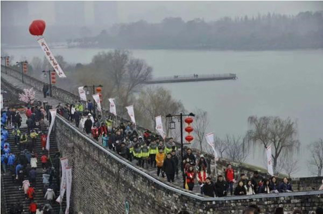 旧时城南一带居民活动半径小,极少远行。于是,在雨水这一天,妇孺齐出、老少同游就是一大乐事。虽然那时城墙上杂草丛生,残破不堪。但每到这时,城墙上熙熙攘攘,你追我赶。甚至各类摊贩也夹杂其间,叫卖糖粥藕、豆腐涝、炒元宵、冰糖球等小吃食。有时连夫子庙杂耍市场的生意人也来赶场子,摆摊吹糖人、炒元宵球,还有竹嗡、木陀螺……娃儿家喜爱之物。爬上城头,空气清新,登高远望,春天美景一览无遗。因此,老南京人也认为,正月十六爬上城头,可“走百病”。