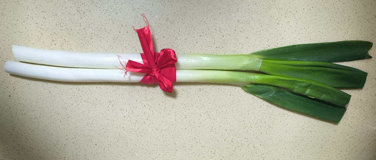 按照老南京的习俗,过年前要选择一些品相好、尺寸大、样貌饱满的大葱,将其洗净、晾干,两根一组裹上红纸条,分别挂在门厅、窗框、匾额上,或担在床头几上的两尊蜡烛台间。到了年三十晚上,与燃着的蜡烛交相辉映,家中顿时平添喜气,更热闹。