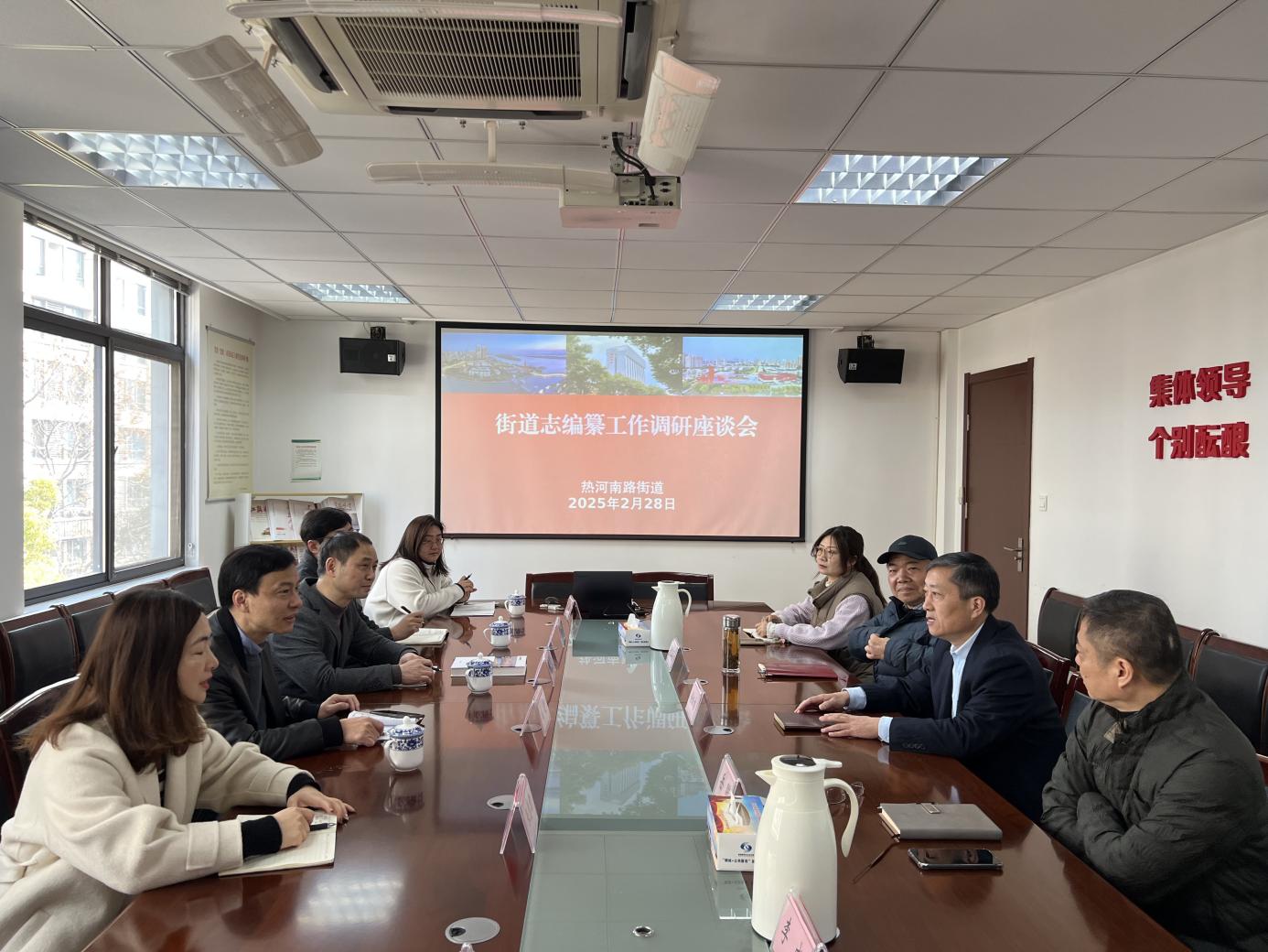 在热河南路街道调研期间,街道党工委书记徐松林等参加调研相关工作。座谈会上,《热河南路街道志》总纂薛玉虎汇报街道志编纂进展情况,徐松林就街道整体情况作了补充说明。刘珲对街道志的内容准备与正文编纂的协同、下限的合理性以及珍贵资料的搜集整理保管等方面提出具体意见。