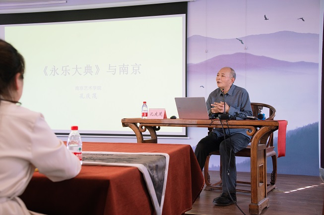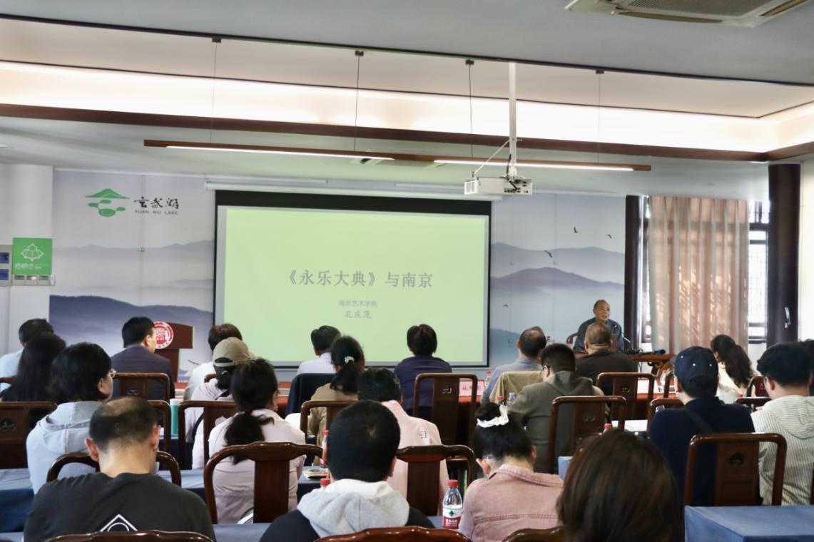 3月26日下午,“南京方志大讲堂”走进南京玄武湖梁洲明朝黄册库旧址,特邀南京艺术学院文博学院教授、博士生导师孔庆茂开讲“《永乐大典》与南京”。南京市、区地方志工作机构有关人员,南京玄武湖公园管理处、市地方志学会、南京史志馆联盟成员单位代表,部分文史爱好者和市民游客参加了活动。