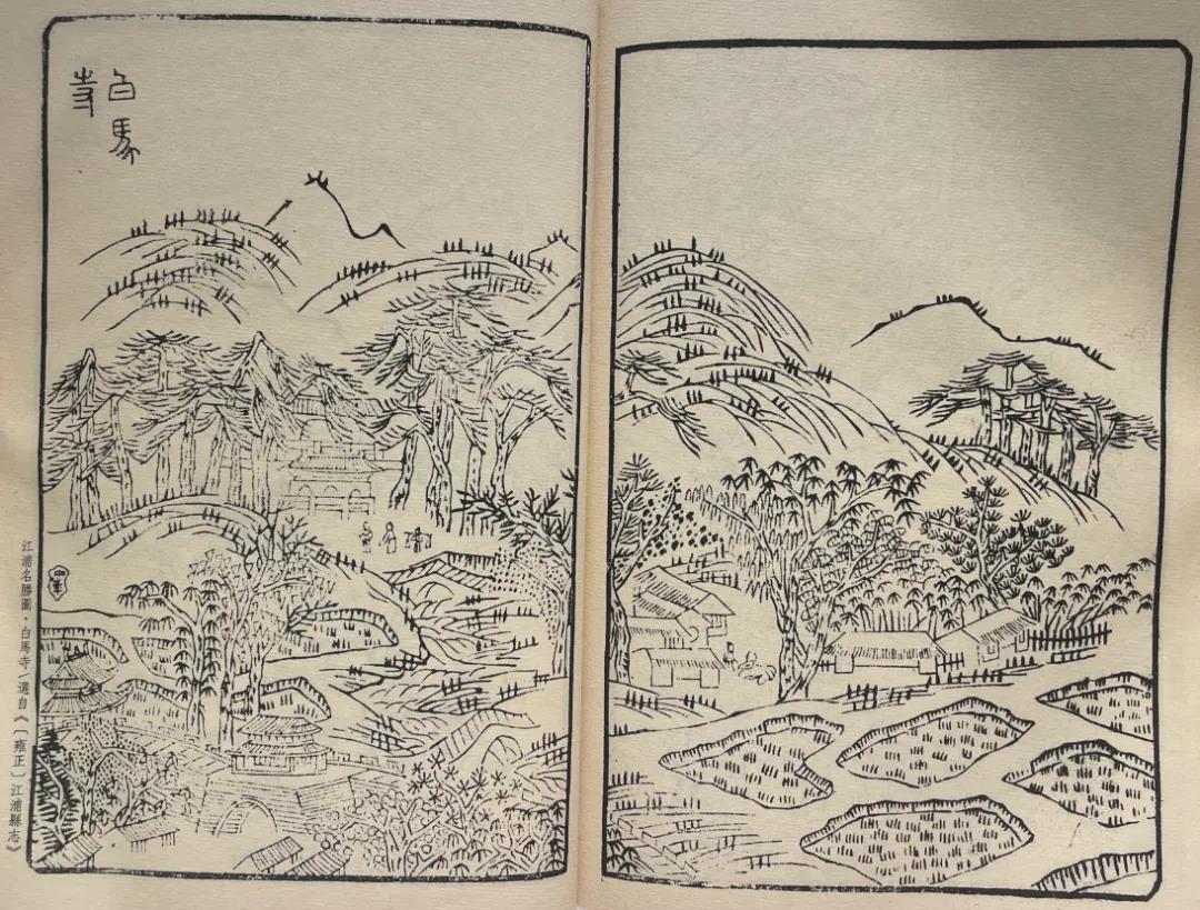 浦口自古地域辽阔、山川秀美,南有长江,北有滁河,水韵灵动。其方志地域图中,记载的名胜古迹、自然风景等数不胜数。在《[雍正]江浦县志》里,就记录了不少关于浦口名胜的古地图,有福龙山、汤泉、珠泉、白马寺等等。