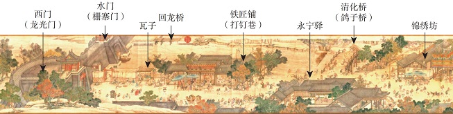 冯宁《仿宋院本金陵图》城内西部地名解释图
