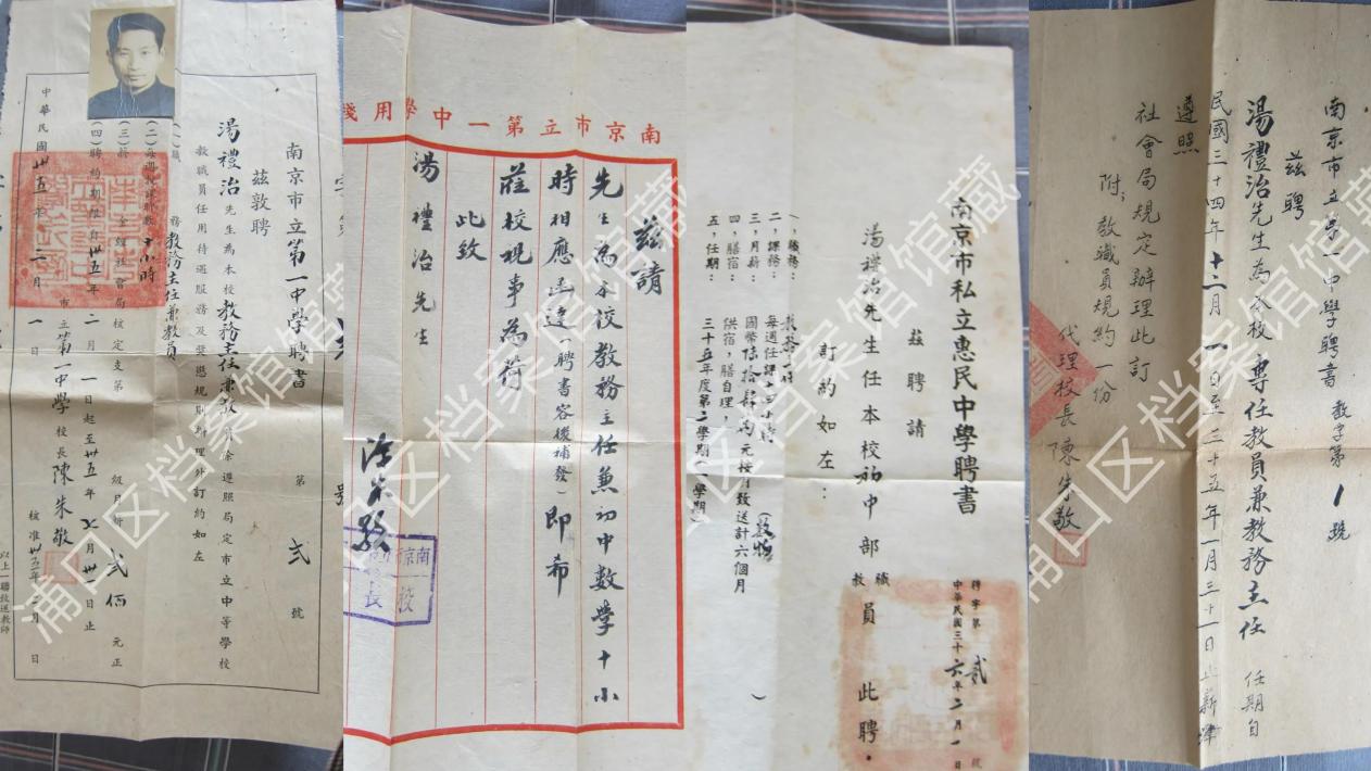 1945年6月,汤礼治携家人回到故乡江浦县。当时抗战尚未结束,江浦民生凋敝,百姓生活艰难,社会处于风雨飘摇之中。汤礼治为生活计,四处求职,先后在南京临时大学、南京市立第一中学、南京市立第四中学、南京私立惠民中学等学校任教。