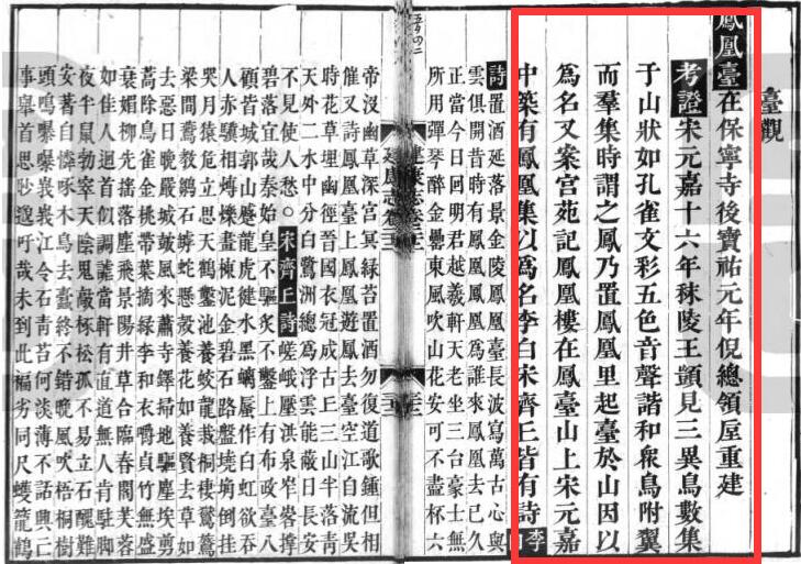 后来南宋人修《景定建康志》,在“凤凰台”的相关记载中,亦载有此类事: