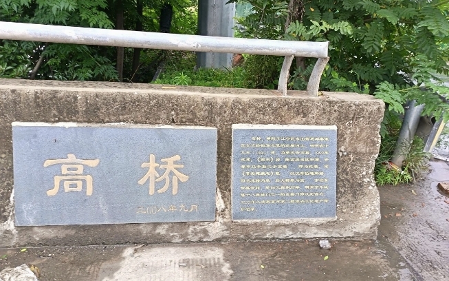 相传高桥建于汉代,为隐士皋伯通所建,因此最早称为“皋桥”。后人讹其谐音“高”字,故称高桥。明代重建高桥时,用的是修建七桥瓮剩余的石料,所以又被称为“剩石桥”。2009年,原石桥被拆除,后改建为钢筋混凝土结构的桥,位置未变,但此桥已非彼桥。