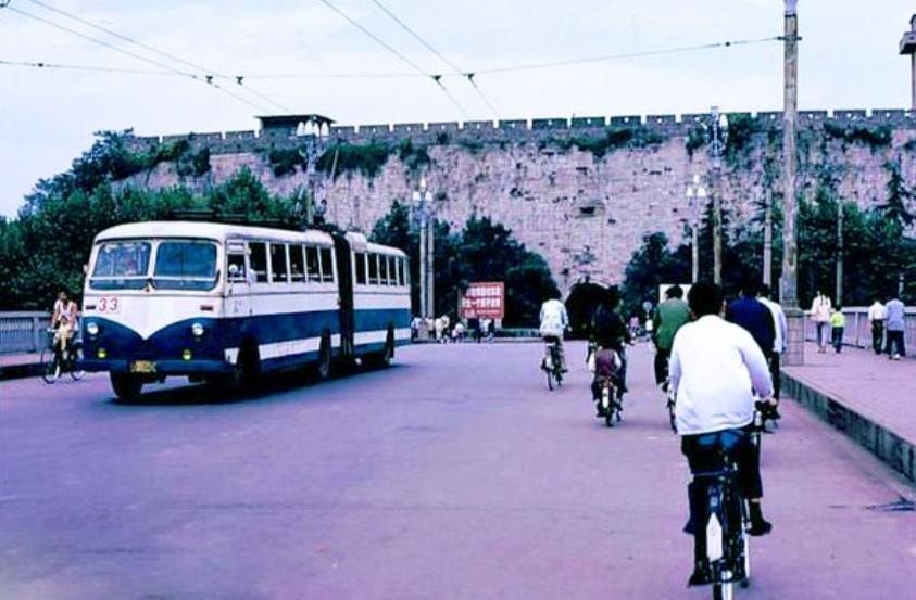 20世纪70年代,南京首次开通了无轨电车。无轨电车车厢顶上两根长长的电杆连接着两股拇指粗的电线,从雨花台满载着乘客,沿着雨花路驶向南京站。那时,中央门长途汽车站、南京火车站是南来北往的旅客汇聚之处。