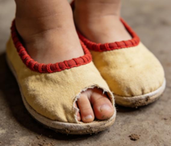那会儿生活不易,寻常人家给小孩子买鞋常有问题。