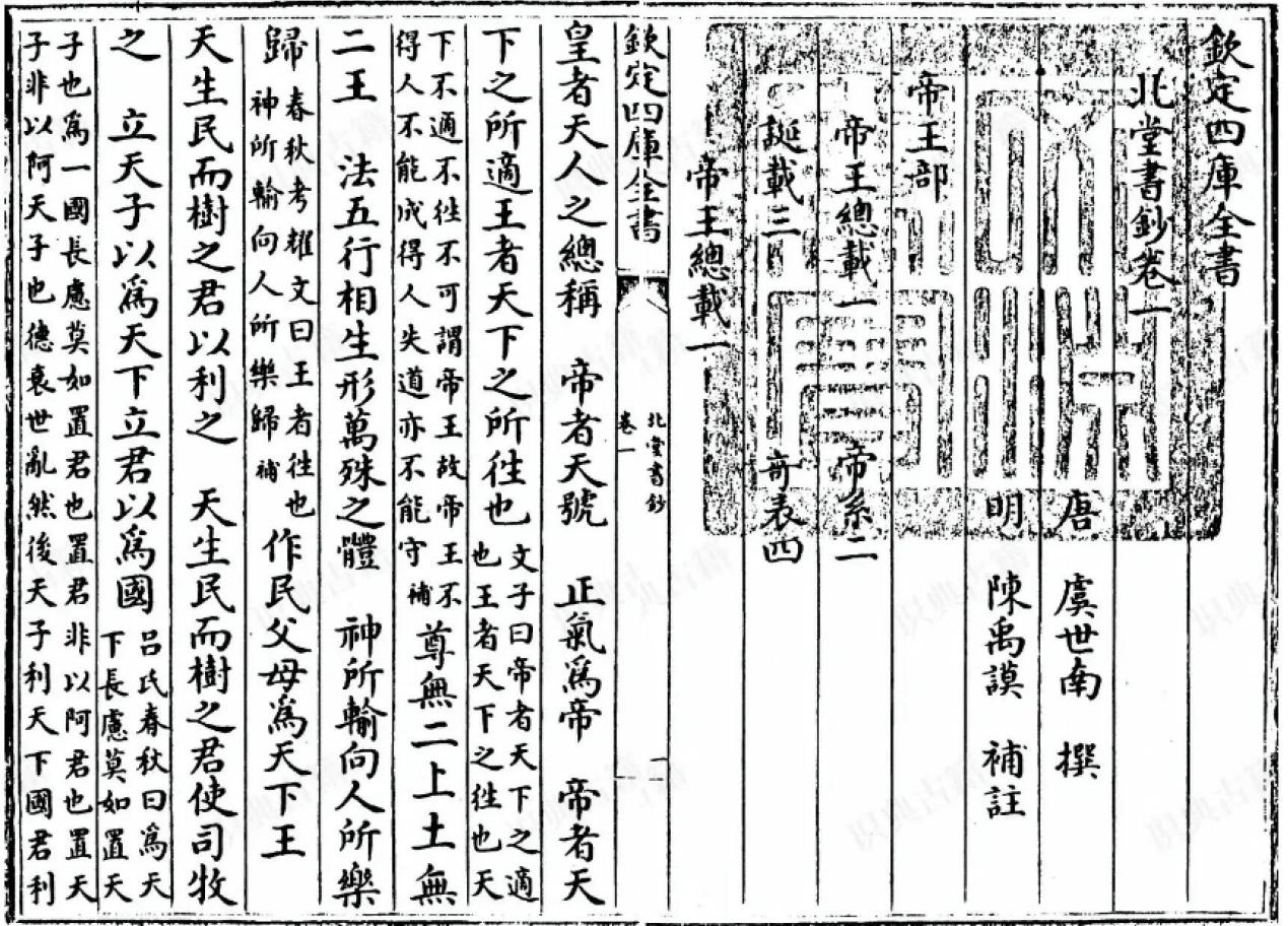 唐 虞世南撰《北堂书钞》(钦定四库全书 明陈禹谟补注本)