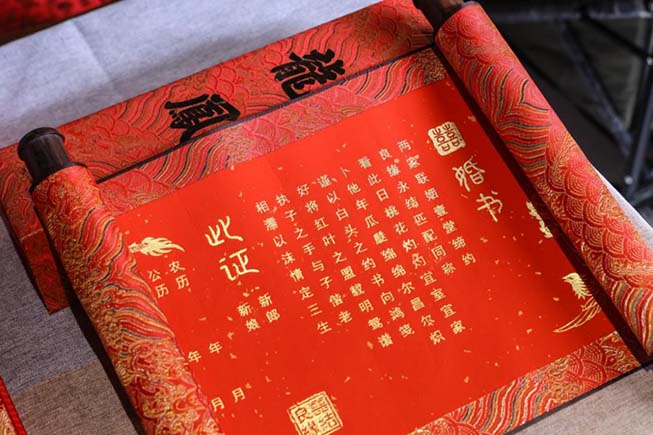 金箔婚书卷轴画