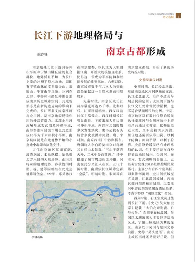 其中,“文化名城”栏目以“长江文化”为主题,刊载南京师范大学教授姚亦锋《长江下游地理格局与南京古都形成》、南京大学老师干有成《长江对南京城市文化的影响》等文章,从地理变化、文化影响、城市发展、滨江开发等多个角度体现了南京段长江对于古都南京的形成有着深远影响和意义。