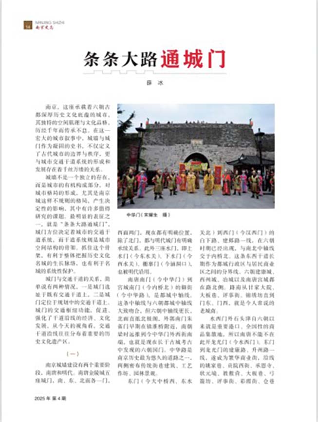 “金陵文脉”栏目重点刊出薛冰的《条条大路通城门》一文,梳理了南京城墙城门的建设历程,阐述城门选址与城市交通干道系统形成、功能区发展的紧密关联。