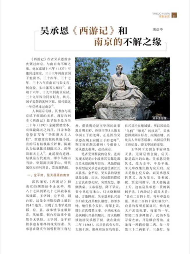 “探索发现”栏目中,周运中所写的《吴承恩<西游记>和南京的不解之缘》讲述了吴承恩《西游记》与南京的深厚渊源及文学关联。“石城变迁”栏目推出李昕的《从新街口到淮海路》,详尽回顾了新中国成立前南京新街口至淮海路沿线的历史变迁。