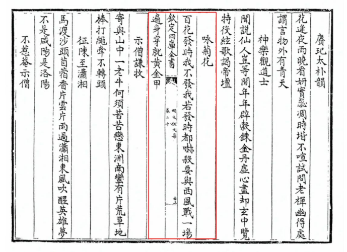 看似通俗甚至粗俗,实际上意旨深邃,气势宏大。与《题燕子矶》格调相近的还有《咏菊》:“百花发时我不发,我若发时都吓杀。要与西风战一场,遍身穿就黄金甲。”《咏竹》:“雪压枝头低,虽低不着泥。一朝红日出,依旧与天齐。”