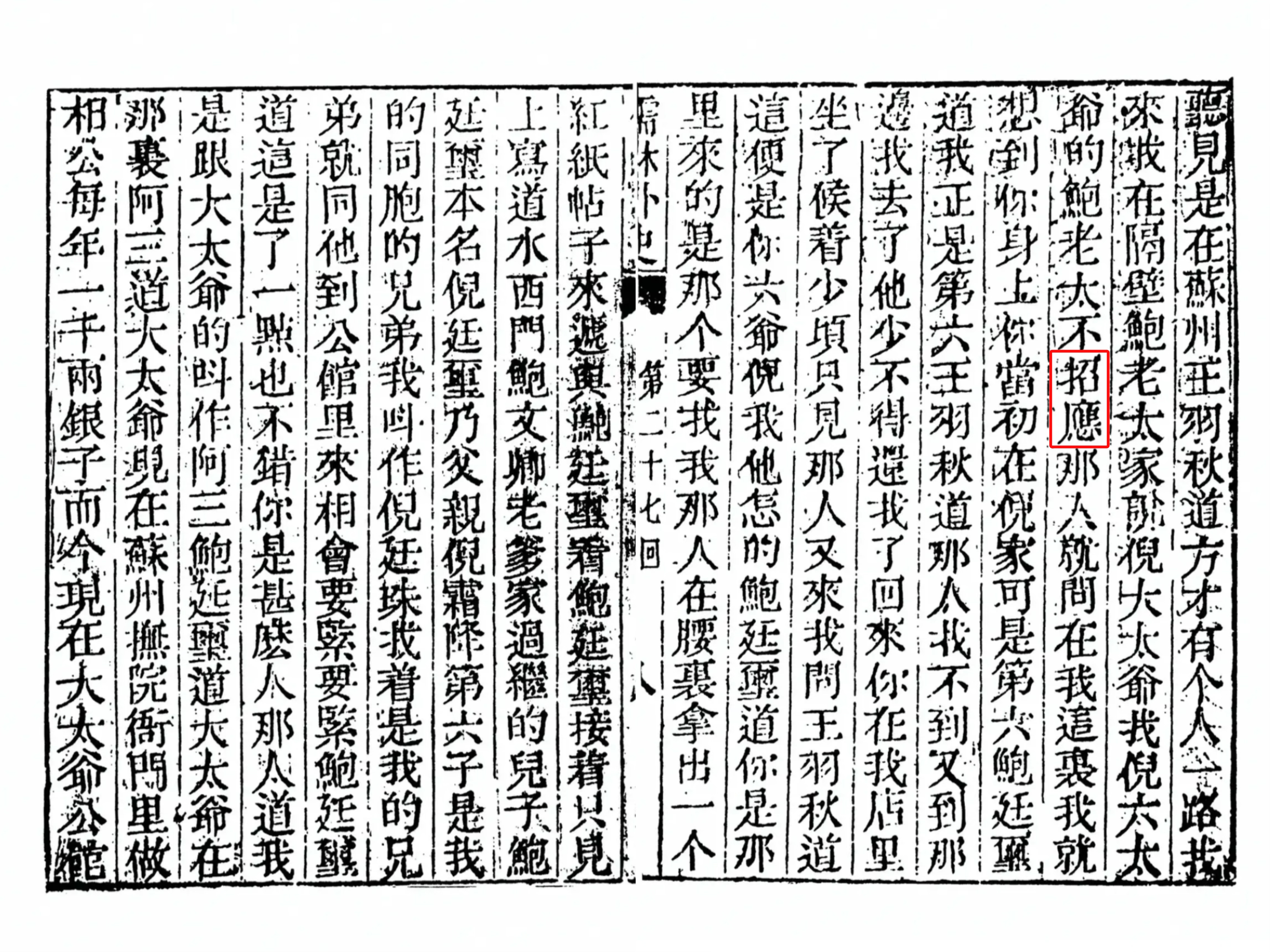 吴敬梓的《儒林外史》里就有不少南京话,如“吵窝子”“招应”“靸(sǎ)”“筲箕”等。
