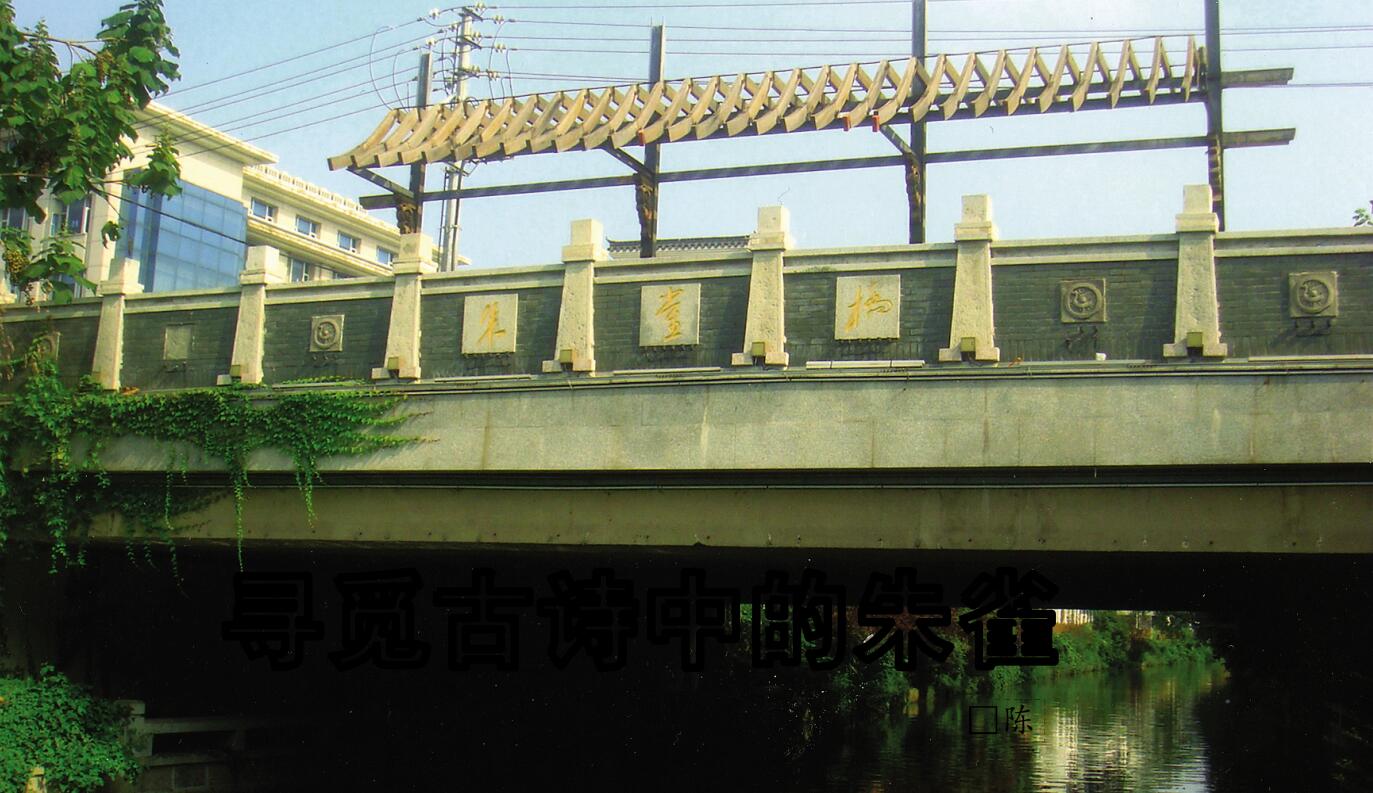 如今,古朱雀桥虽已无迹可寻,但为延续文脉,今人在武定桥西、镇淮桥东北的内秦淮河上复建一桥,并于1999年命名为“朱雀桥”。桥长约40米,两侧栏板刻有草书桥名,镶嵌六组朱雀浮雕,古朴雅致。桥畔立“朱雀新坊码头”石刻,与周边仿古河房相映成趣,形成一片怀古空间。河水悠悠,旧事已远。但复建的朱雀桥连接着过往与当下,承载着厚重的历史与文化,为人们增添了一处怀古追思的好去处。