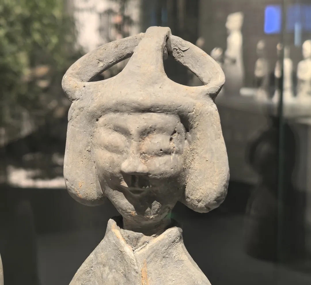 南京出土的陶俑中还常见一种形似扇子的发髻,这种髻不是很高,但相当宽,两侧各有一个顶角,或许是起固定作用的髻钗之类物体伸出所致。这种髻相当大,就像一顶大帽子戴在头上。